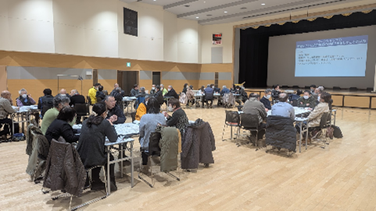 本業務は、防災士や地区役員、日赤奉仕団など、地域における避難行動・避難所運営に関わる可能性のある方々を対象に、総合防災訓練と連動した防災士等フォローアップ研修会を実施したものである。第1回研修会では、総合防災訓練の解説を行うとともに、地域で改善すべき点を検討した。第2回研修会では、総合防災訓練で実施された各訓練を振り返り、課題や気づきを共有した。さらに、ワークショップ形式で次年度に向けた改善点の検討を行い、各地域の防災力向上に繋げる機会とした。