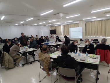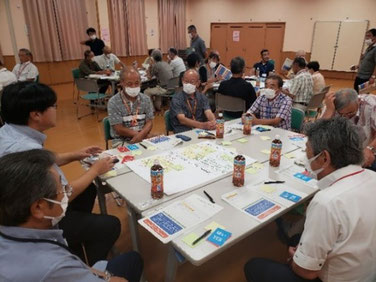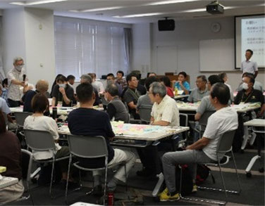 江南区内の2つのコミュニティ協議会を対象として、避難所運営委員会の役割や重要性に関する講義を行った後、防災ゲーム「クロスロード」を活用して避難所運営委員会立ち上げに関するワークショップを実施しました。